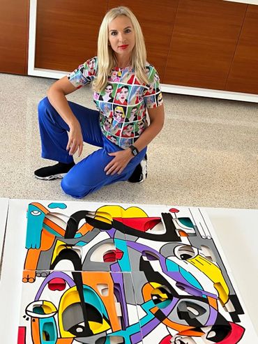 Through her signature 3D Cut Canvas technique, Zhanna Thomas transforms the painting into a sculptural composition. Sections of the canvas are cut and layered, allowing depth and shadow to emerge. These openings reveal hidden spaces within the artwork, symbolizing the complexity behind outward beauty and charm.