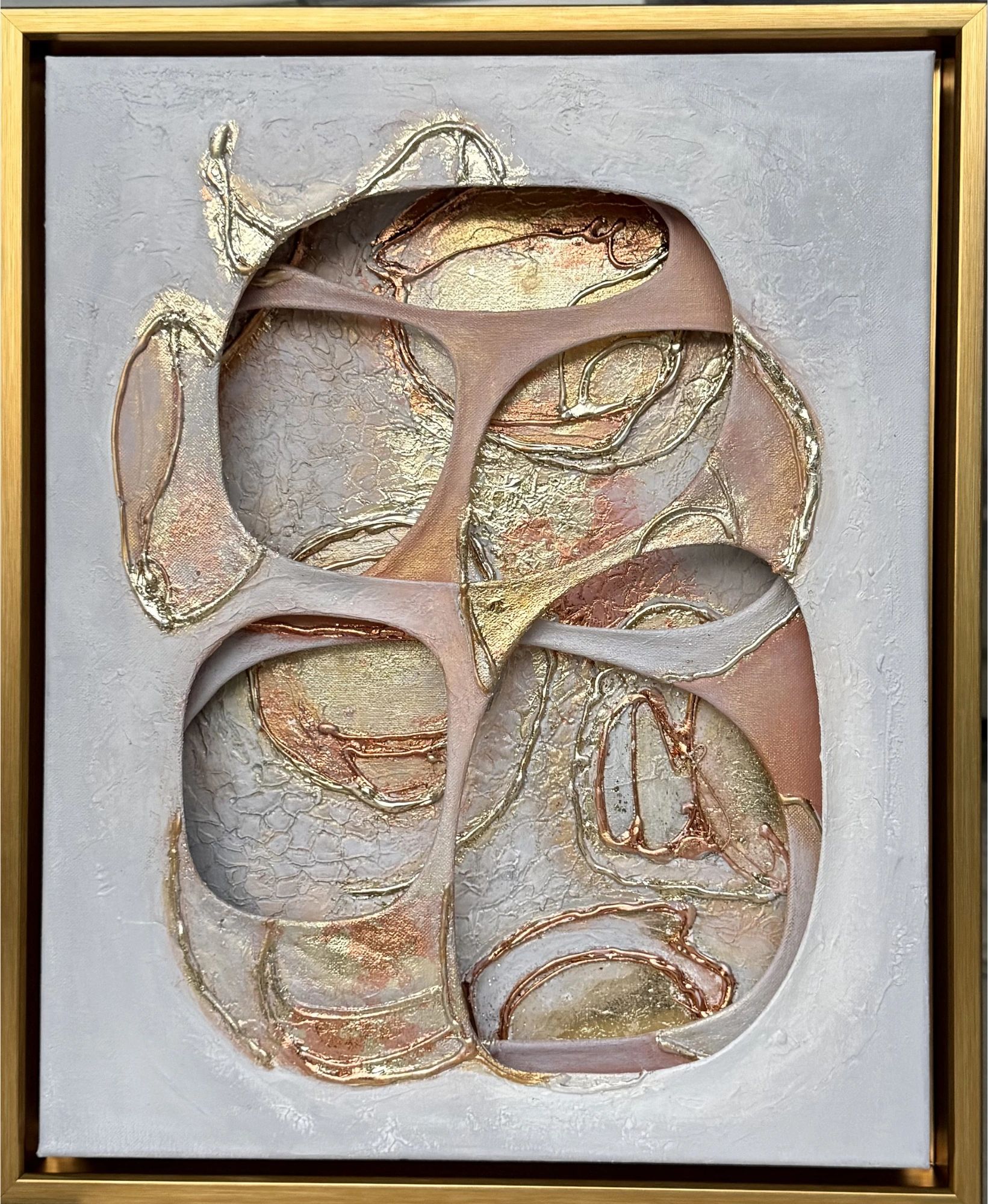 Created using the 3D Cut Canvas Technique, the surface is cut and reshaped to reveal hidden layers beneath. Soft sculptural openings expose luminous textures, gold leaf, and delicate fabric, allowing light to move through the composition like a quiet pulse of energy.