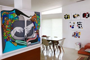 Despite that distance, energy flows between them through lines, colors, and gestures. The artwork suggests that true connection is not only physical, but emotional and spiritual.